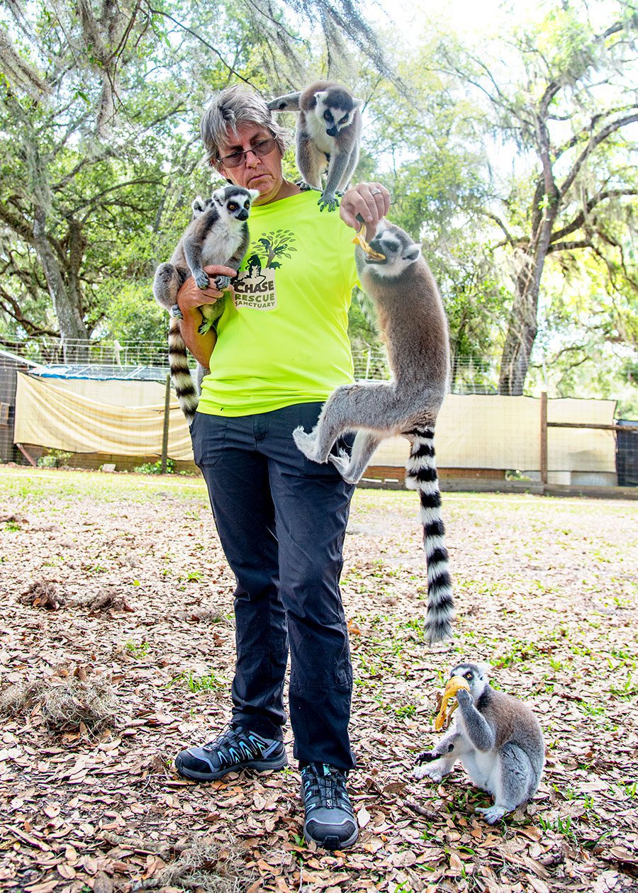 Owners Nina and Donna Vassallo, who started Chase Rescue 14 years ago, say the facility runs solely on donations. Because donations are sometimes hard to come by, however, they began offering private tours and various types of classes involving unique animal encounters, including Lemur Yoga.