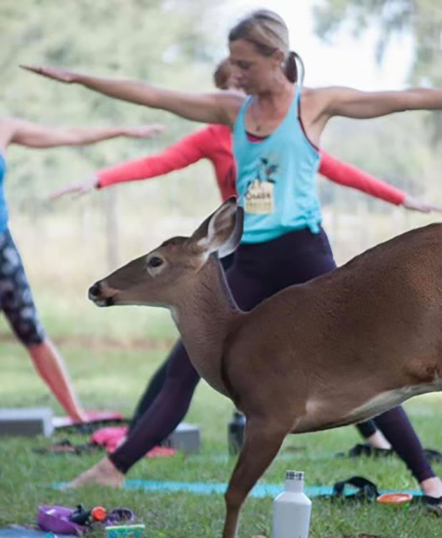 Penny says she encourages people, even if they’ve never done it, to try yoga or the Nidra meditation because the benefits of both are great, especially with the fun element of animal encounters that go along with them at Chase Rescue.